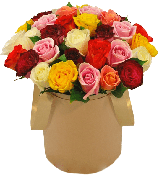 Розы – цветы прошлого, настоящего и будущего, они останутся в моде навсегда, ведь это классика. Букет, состоящий из роз самых разнообразных оттенков порадует любого члена семьи или близкую сердцу даму. Белый цвет выразит нежность и свет, розовый – трогательность отношений, красный – насыщенные чувства, желтый – счастье и улыбку, а оранжевый – самые лучшие пожелания. Цветочная композиция в стильной коробке подойдет для любого повода и навсегда запомнится получателю.